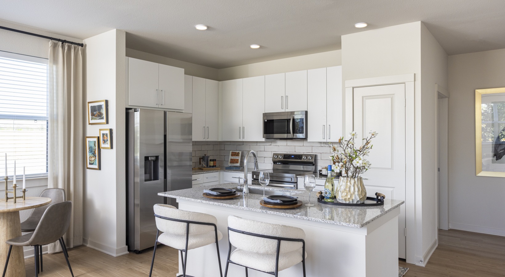 Our one and two bedroom floor plans feature stylized finishes and open layouts, ranging from 678-1,188 square feet. Private Yards are included with select floor plans, providing indoor and outdoor connectivity at your doorstep.